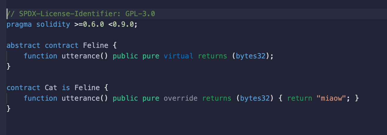 Abstract contracts, on the other hand, have functionalities that can be implemented by other contracts inheriting from them according to their own needs. These contracts are not deployed themselves; instead, contracts inheriting from them can be deployed. Therefore, during development, when there is a need for one or more common features and some features will be used in different contracts with different functionalities, an abstract contract can be written to serve as a parent, and other contracts can inherit from this abstract contract to develop within a common framework.