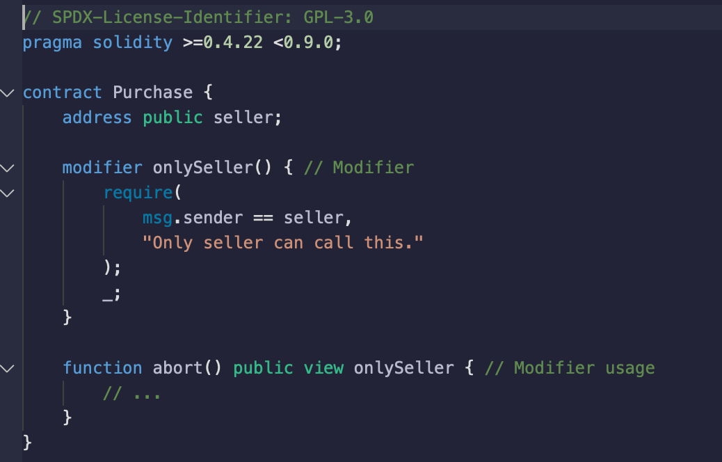 "Modifier functions" are used to control access to functions (only contract owner, accounts with a certain amount of balance, etc.)