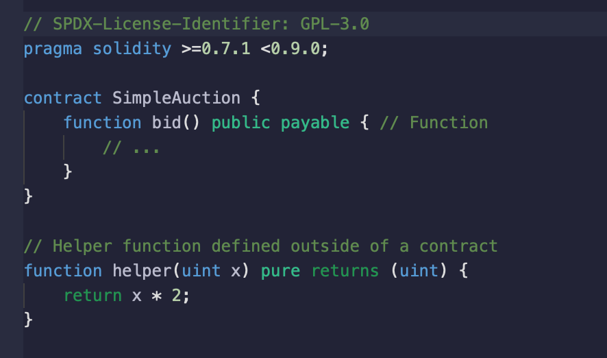 Struct data type: It is used to define new data types. Inside, we can use types specific to Solidity, as well as the "data type created via inheritance" or "data type created with struct" that we defined earlier.